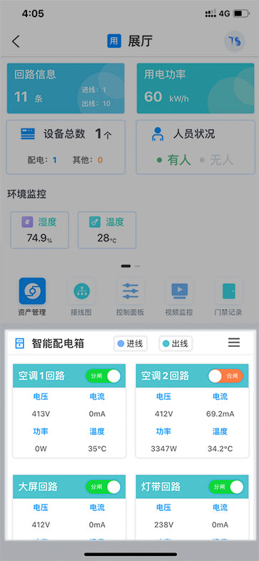 全方位管理电缆、配电、光伏、储能设备以及用电设备,并完成对水、电、气的实时监控, 智能优化用能方式。