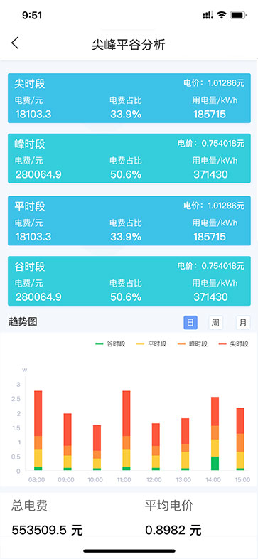 通过大数据与人工智能技术统计分析能源使用情况,并预测未来的用电量,为用能策略提 供有效参考。