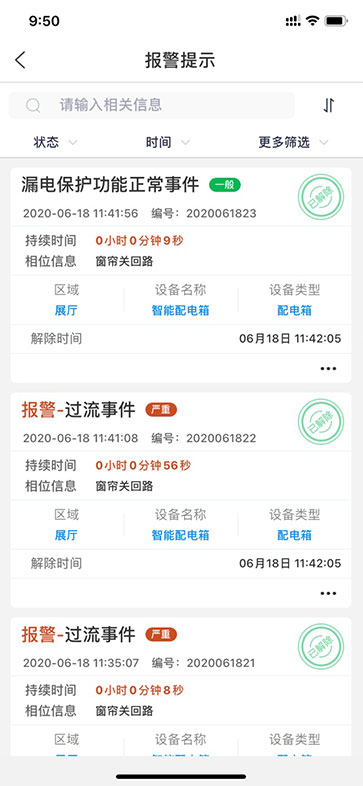 对能源相关设备所处区域的环境、安防、电气火灾等进行监控,有效保障人员安全、用能安全 与资产安全。
