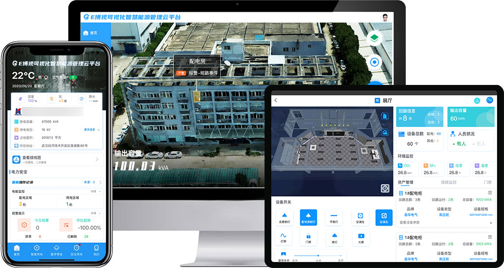 E博视可视化智慧能源管理云平台,是以高效综合能源管理为目标,基于云架构的物联网能源管理系统。系统结合全景数据分析技术、数字孪生(DigitalTwins)技术和智能电网技术,实现能源数据实时监测、三维可视化管理与远程故障预判、诊断和精准定位,为用户提供全面感知、透明可控的综合能源服务平台。
